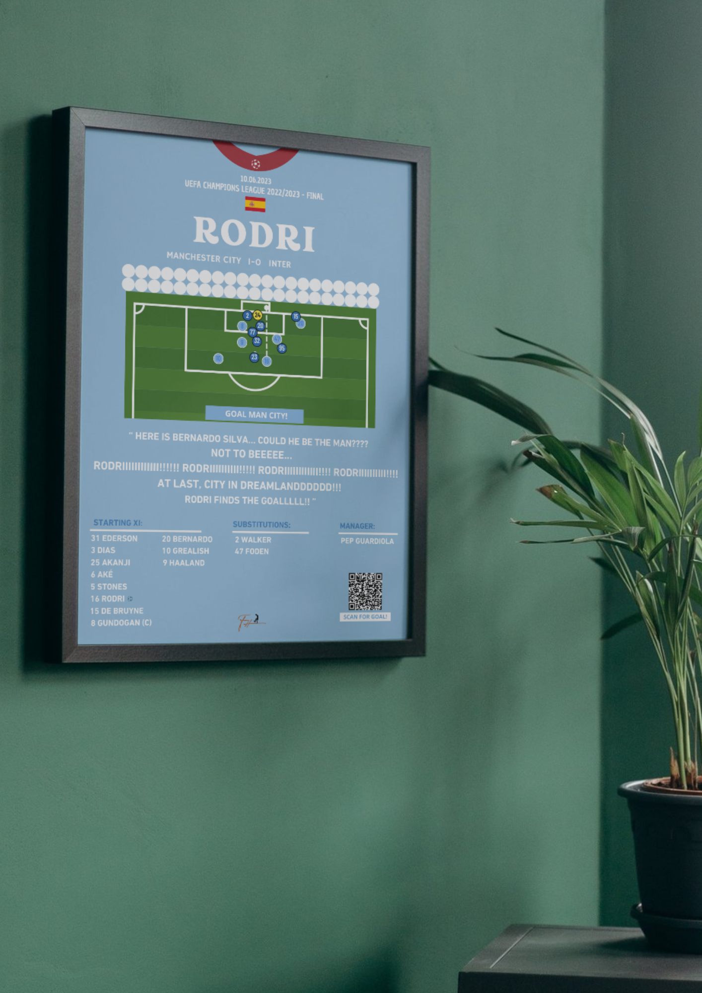 Printed on high-quality matte paper, equipped with a black wooden frame. This goal is sure to stand the test of time, offering lifelong memories perfect for decorating any room.